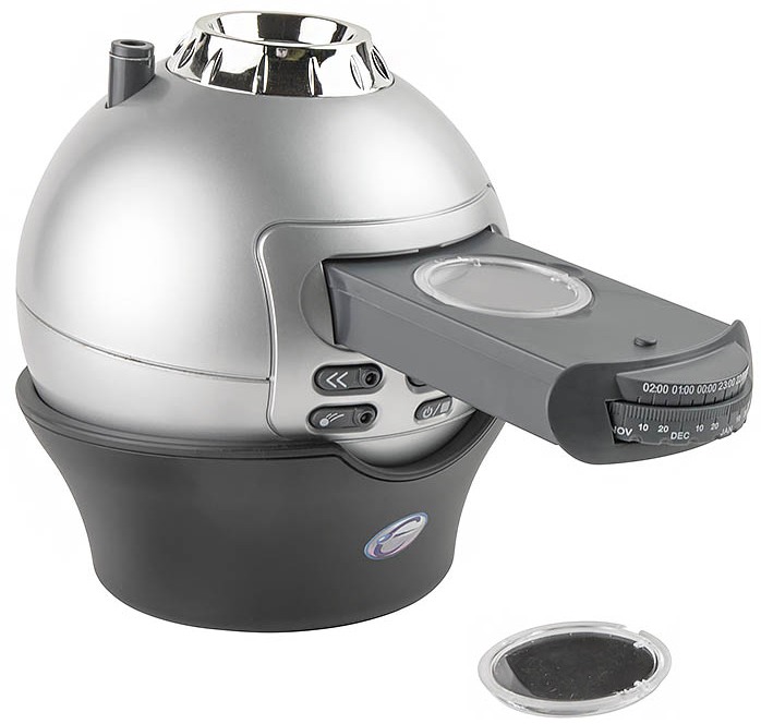 Отображение звездного неба по заданной дате/времени. Звезды меняют свое местонахождение относительно наблюдателя в зависимости от даты и времени суток. На корпусе прибора предусмотрено два колесика, вращая которые, вы можете увидеть, как выглядит ночной небосвод в любой день года с 20:00 до 02:00.