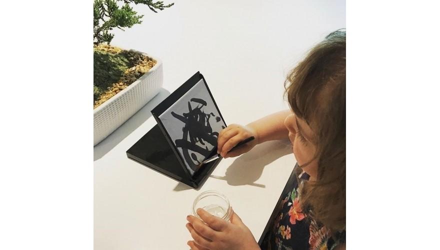 Главная особенность Акваборд Мини заключается в том, что достаточно просто водить кисточкой по планшету, чтобы увидеть четкие линии и рисунки на полотне. Краски не нужны, поэтому с Акваборд Мини не нужно бояться, что ваш ребенок раскрасит все стены.
