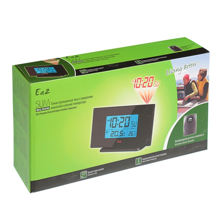 Проекция времени Измерение комнатной температуры Измерение наружной температуры (с помощью дистанционного датчика, макс 3 канала) Часы Календарь Будильник 8-минутная функция «дремать» Умные гаджеты от торговой марки Ea2 — это отличное приобретение для себя или в подарок! Семейство представлено множеством интересных и полезных решений: различные метеостанции, многофункциональные часы, термометры и целый ряд аксессуаров. Все приборы исполнены в стильном эргономичном дизайне, имеют очень понятное управление и весьма информативный интерфейс.