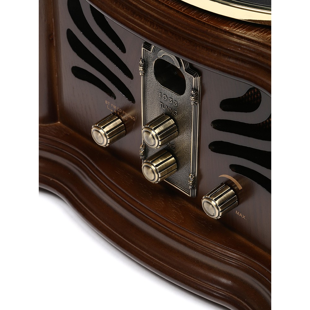 Характеристики: Габариты коробки: 46 х 46 х 49 см Функции: FM радио, CD, MP3, USB-порт, Bluetooth, проигрыватель винила (33/45/78 об/мин), пульт ДУ. Мощность: 30 Вт. Материал корпуса: натуральное дерево. Гарантия: 12 месяцев.
