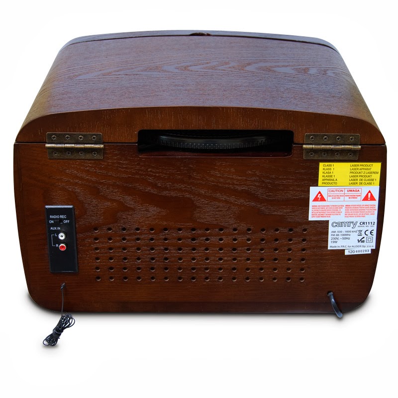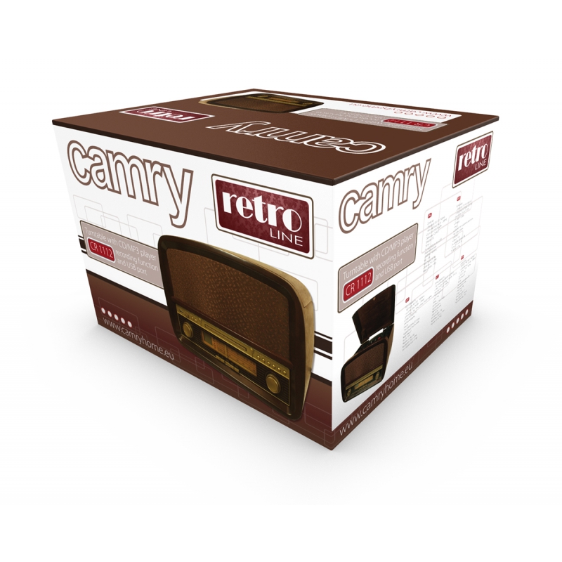 Camry CR1112 — проигрыватель пластинок с ретро дизайном и современными функциями. Он поможет Вам насладиться музыкой, записанной на винил, компакт-диски, флешки, послушать любимые радиостанции и даже записать понравившуюся мелодию на usb-флеш в формате mp3. Встроенные широкополосные динамики обеспечивают достойное качество звучания даже в средних по размеру помещениях.