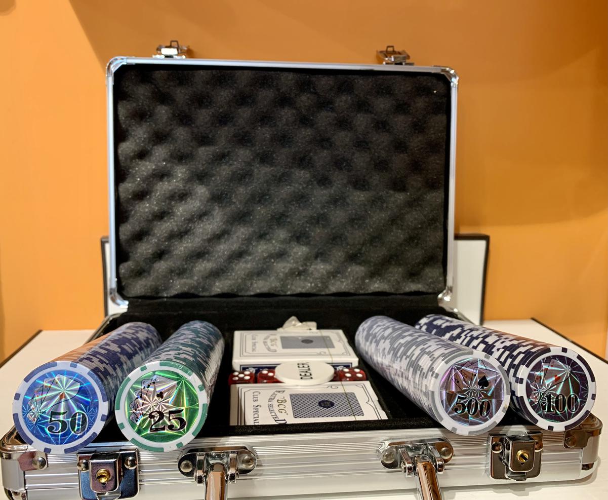 Характеристики: Карты материал: с пластиковым покрытием Количество фишек: 200 Вес фишки: 9,5 г Номинал фишек: 25−50шт, 50−50шт, 100−50шт, 500 — 50 шт. Сумма номиналов: 33,750 Карты: 2 колоды Кости: 5 костей Дополнительно: фишка дилера Кейс: металлический кейс Размер (см): 30/21/8 Размер в упаковке (см): 31/24/8 Вес (кг): 2.6 Упаковка: полиграфическая