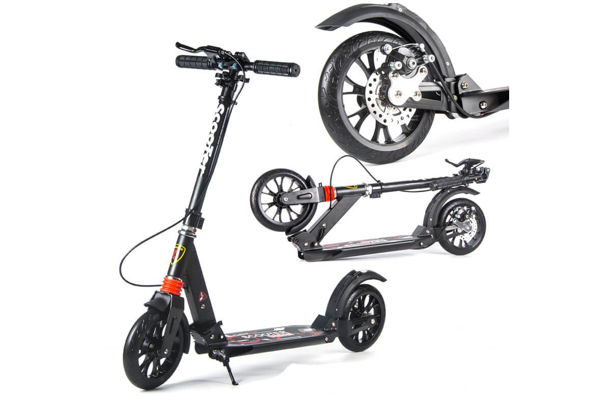 Самокат с амортизаторами Scooter Urban с дисковым тормозом, черный