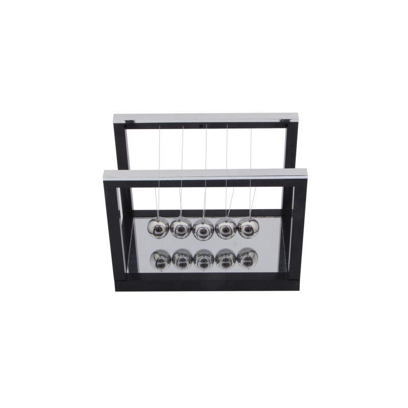 Небольшая настольная кинетическая скульптура в собранном виде демонстрирует закон сохранения энергии, открытый Исааком Ньютоном. Достаточно отвести и отпустить один из крайних шариков, и Вы увидите, как это работает. Завораживающее медитативное постукивание блестящих шаров на Вашем столе поможет сосредоточиться при обдумывании важных вопросов или наоборот, расслабиться после тяжелой работы.