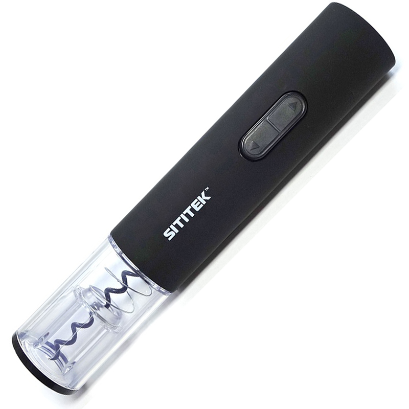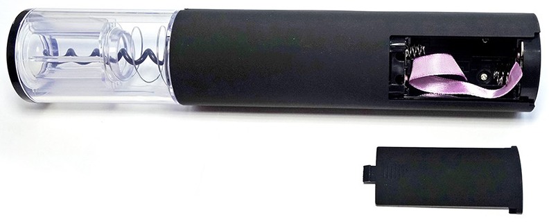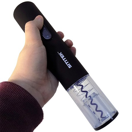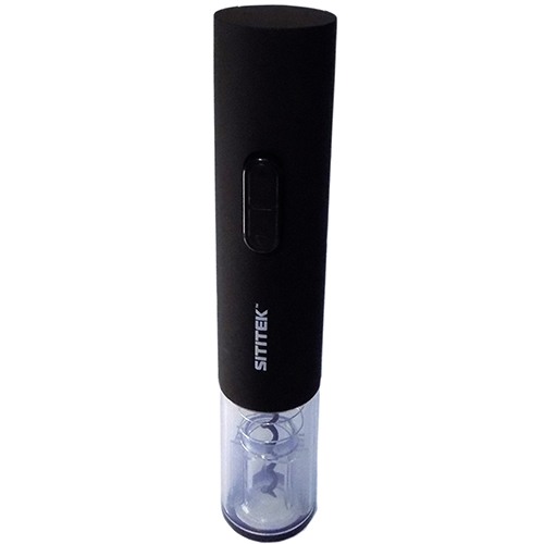 Быстрота откупоривания. Прибор тратит на извлечение пробки из бутылки не больше 9 секунд. Еще 8 секунд ему нужно для освобождения от пробки. В результате на всю процедуру раскупоривания винной бутылки от начала до конца уходит каких-то 17 секунд. Нож для срезания фольги в комплекте. Для удаления защитной пленки с бутылки перед ее откупориванием вы можете воспользоваться специальным ножом, поставляемым в комплекте. Нож сконструирован таким образом, что на него можно поставить штопор, пока в нем нет необходимости. До 40 откупоренных бутылок на одном комплекте батареек. Прибор питается от 4 батареек типа «АА». Вам не придется менять их слишком часто. Легкий и прочный корпус. Корпус изделия изготовлен из прочного и долговечного ABS-пластика. Благодаря этому штопор имеет малый вес, его использование не вызывает неудобств даже у представительниц прекрасного пола. Как работает? Для откупоривания бутылки вам нужно воспользоваться переключателем, имеющим два рабочих положения («вверх» и «вниз»). При нажатии на нижнюю часть переключателя и удерживании его в этом положении спираль вращается в направлении по часовой стрелке, в результате чего она врезается в пробку и извлекает ее из горлышка бутылки. Для выталкивания пробки из штопора наружу вам нужно нажать на верхнюю часть переключателя. Продуманная конструкция Штопор «SITITEK E-Wine P» отличается эргономичной конструкцией, которая максимально упрощает работу с ним. Так, переключатель направления вращения спирали установлен специально «под палец», прямой захват позволяет откупоривать винные бутылки одной рукой, округлая форма корпуса устройства способствует его более удобному удержанию.