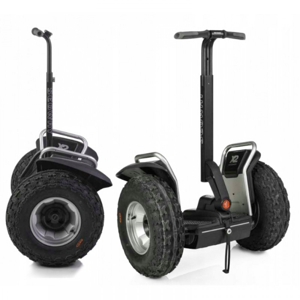 Усиленная конструкция и мощная колесная база (размер шины 530 мм). Специальная рифленая поверхность протекторов. Оптимальный вес 55 кг и мощный заряд батареи, которого хватает на 240 минут езды. Инновационная ручка с удобным креплением. Максимальная скорость 20 км в час. Устойчивый баланс и элементарное управление. Принцип управления и пользования Segway X2 Запуск работы этого самоходного транспортного средства осуществляется нажатием соответствующей кнопочки на пульте управления, которые опытные пользователи гордо именуют ключом зажигания. На нем же можно выбрать и подходящий режим движения сегвея и, при необходимости, поставить его на сигнализацию. Кроме того, на экран этого пульта будет выводиться вся накопленная информация, касающаяся использования транспортного средства, к примеру: скорость движения, пробег; уровень заряда АКБ. Наличие неисправностей и т.д. Вся вышеперечисленная информация нужна будет во время движения, она очень точно передается в реальном времени. Таким образом, Segway X2 можно смело назвать очень интересной и функциональной игрушкой, предназначенной для активного времяпрепровождения.