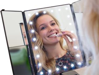 Складное зеркало на ножке для макияжа с подсветкой ULike от бренда GESS с 24 LED лампами.