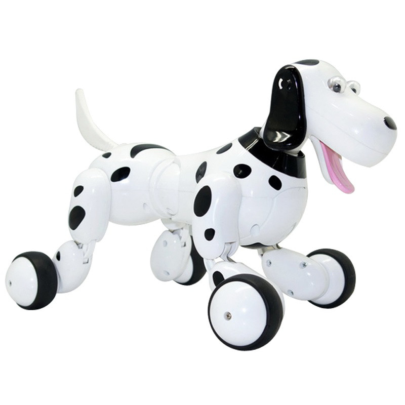 Радиоуправляемая робот-собака HappyCow Smart Dog — это уникальный радиоуправляемый робот, который имеет реалистичную внешность собаки, может показывать различные эмоции и издавать звуки. Управление роботом производится на технологичной частоте 2.4G. Основные функции собаки: движение вперед / назад, повороты вправо / влево, качание головой, движение вперед / назад + качание головой, вилять хвостом, лечь, встать, присесть, погулять, а также другие функции голоса, охраны и демонстрации всех режимов.