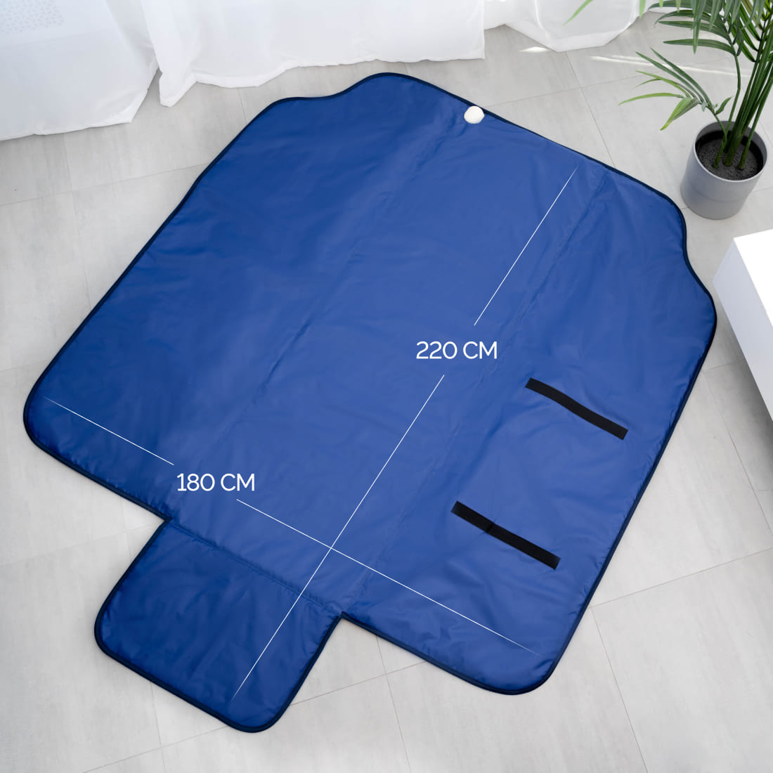 ТЕРМООДЕЯЛО ДЛЯ ОБЕРТЫВАНИЯ И ИНФРАКРАСНОЙ САУНЫ ECOSAPIENS INFRASAUNA 220Х180 СМ. Легкое влагонепроницаемое многофункциональное одеяло для косметологии Infrasauna c двумя независимыми зонами прогрева благодаря карбоновой технологии согреет Вас мягким инфракрасным теплом во время процедуры.