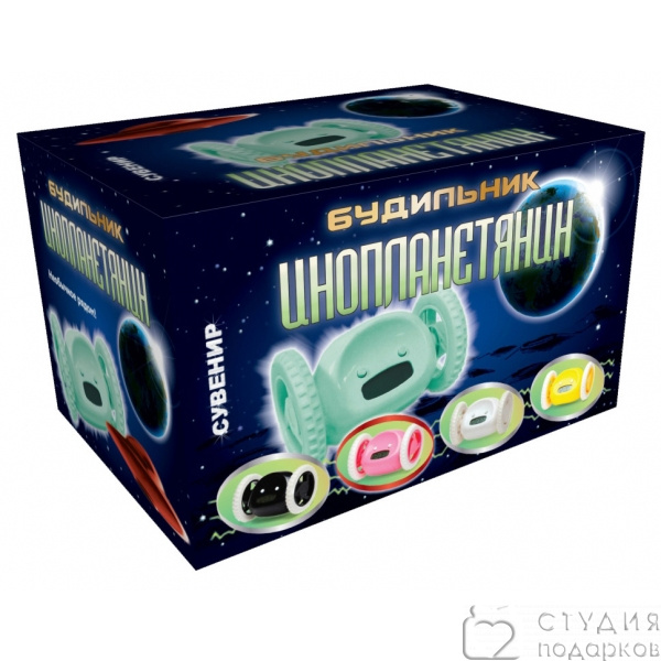 Часы для тех, кому сложно просыпаться по утрам. На корпусе часов Вы видите маленькие глазки-кнопки, они нужны для программирования будильника. Нажмите на них в соответствии с инструкцией, чтобы установить время и запрограммировать будильник. Ваши действия отразятся на жидкокристаллическом экране-ротике. И поутру маленький инопланетянин, крутя колёсами, укатится со своего обычного места, вовсю сигналя о подъёме. Пока соня не поймает сбежавший будильник и не выключит кнопку, находящуюся на нём, инопланетный друг не успокоится, издавая громкие, но мелодичные звуки. С таким будильником опоздания в школу или на работу исключены!