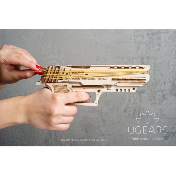 Стрельба резинками — одно из самых популярных детских развлечений, и в UGEARS решили вывести его на новый уровень. Встречайте: заряженный позитивом и нацеленный на веселье, механический пистолет Вольф-01.
