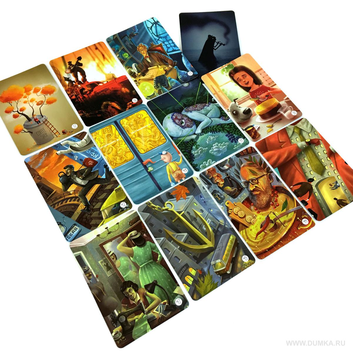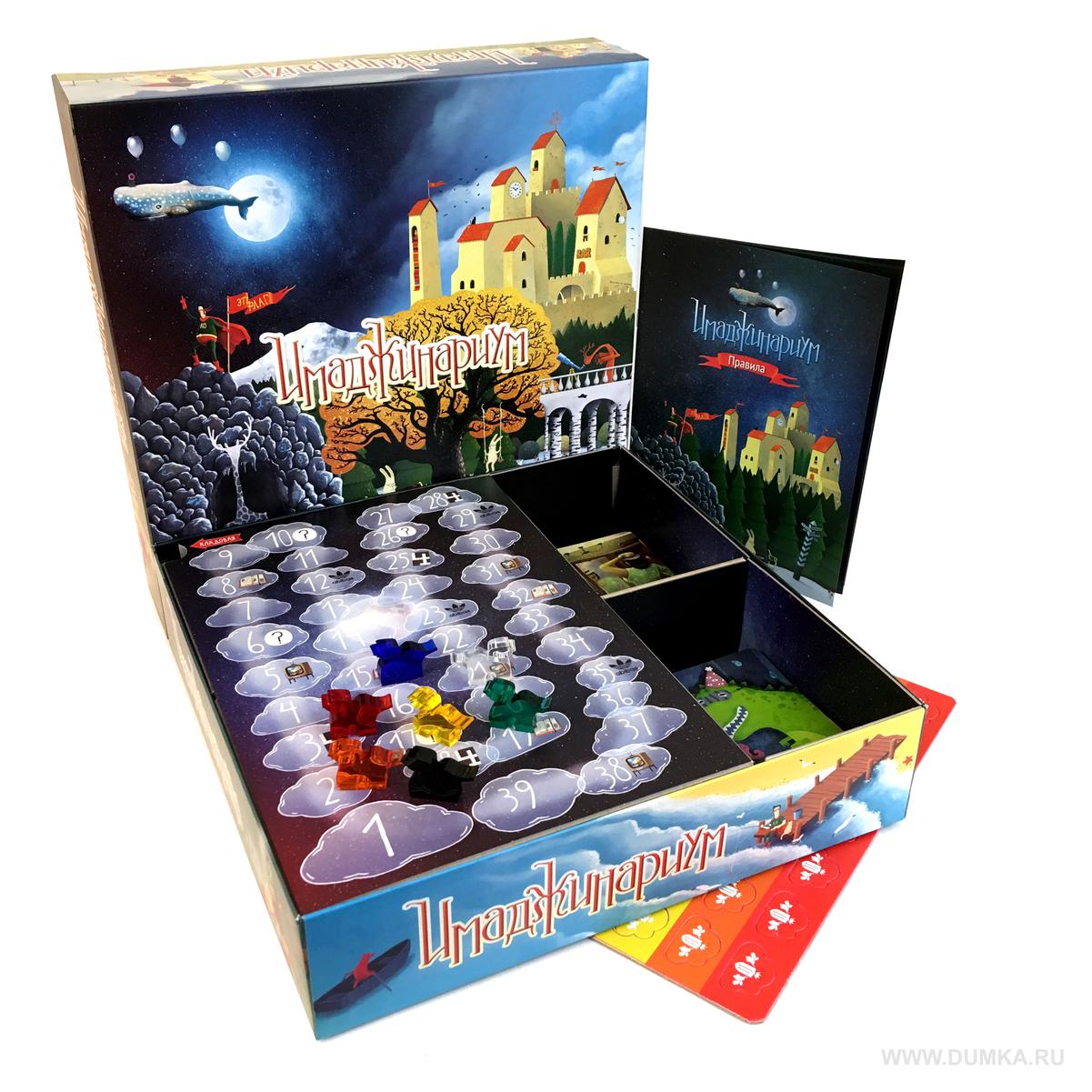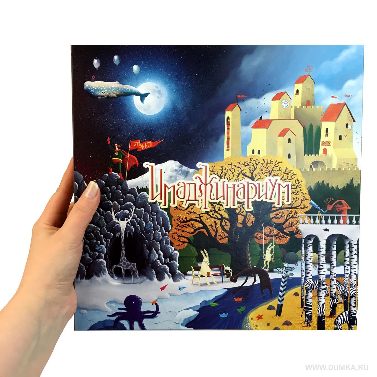 Что это такое? «Имаджинариум» — удивительная настольная игра, не похожая ни на одну другую. В наборе огромное количество карточек с самыми невообразимыми рисунками, на которых словно бы запечатлены чьи-то фантастические сны. Вам предстоит подобрать к карточкам ассоциации —, но не думайте, что все так просто! Необходимо так описать карточку, чтобы ее угадало как можно больше людей, но ни в коем случае не все. Ассоциация не должна быть слишком очевидной и банальной. Придется напрячь воображение и сочинить завуалированное описание, способное запутать людей, но не сбить их с толку. Звучит сложно, но на деле это очень увлекательный процесс. Начав играть, Вы поймете, как это делается, и научитесь по-новому смотреть на привычные вещи. Вместе веселей! Эта парадоксальная игра — любимчик на вечеринках и семейных праздниках. Она подарит несколько часов веселого общения и позволит узнать больше о товарищах по игре, посмотреть на мир их глазами. С «Имаджинариумом» Вы научитесь разгадывать задумки других людей и понимать их с полуслова. Но самое ценное — это добрые и хорошие впечатления, которые Вы получите, проведя вечер с друзьями и родными за этой веселой игрой. И слоны... Крылатые слоны! Фишки в игре — это очаровательные крылатые слоны, которые будут перемещаться с облачка на облачко по игровому полю. Разве может игра быть еще прекрасней? Что входит в набор? Игровое поле 98 карт ассоциаций 7 фишек слонов 42 жетона голосований Правила игры