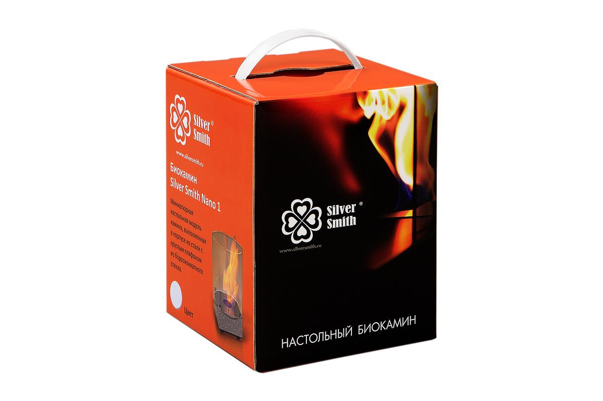 Настольный биокамин Nano 1 Premium Grey от Российского производителя Silver Smith. Данная модель отлично подойдет для дома или квартиры и может использоваться как настольный биокамин. Серия Nano 1 — самые компактные биокамины от производителя Silver Smith. Биокамин Nano 1 Premium Grey стильно упакован, и отлично подойдет в качестве подарка. Модель Nano 1 Premium Grey оснащена термостойким боросиликатным стеклом чешского производства. Металлическая часть окрашена итальянской порошковой краской цвета «light grey» с фактурой «Мятая бумага». Горение происходит в результате испарения биотоплива из контейнера с металлическим волокном. Тушение биокамина осуществляется при помощи специального металлического пламегасителя.