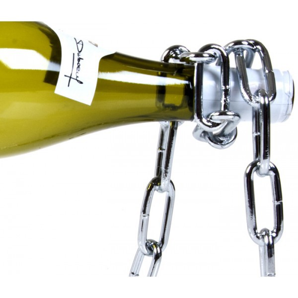 Оригинальный держатель для бутылки в виде цепи. Бутылка помещается в подставку горизонтально горлышком в кольцо из цепи, создавая полную иллюзию парения. Декоративный держатель украсит стол и будет запоминающейся деталью сервировки!