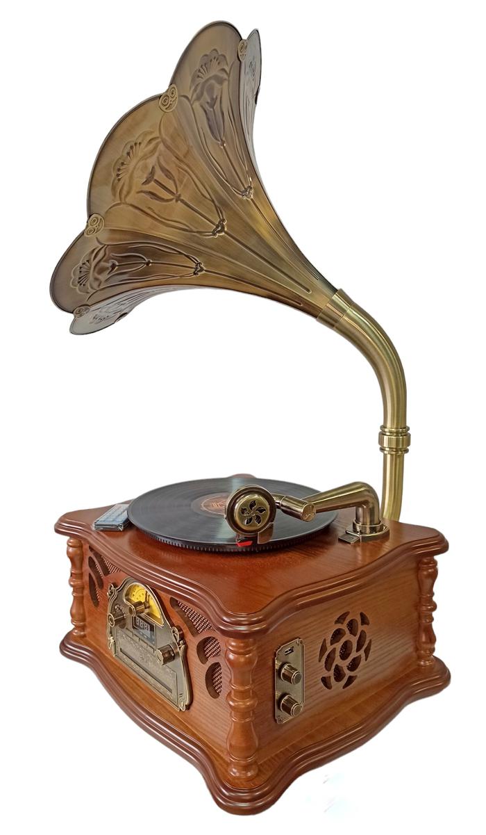 Граммофон в стиле ретро с металлической трубой «Прага»