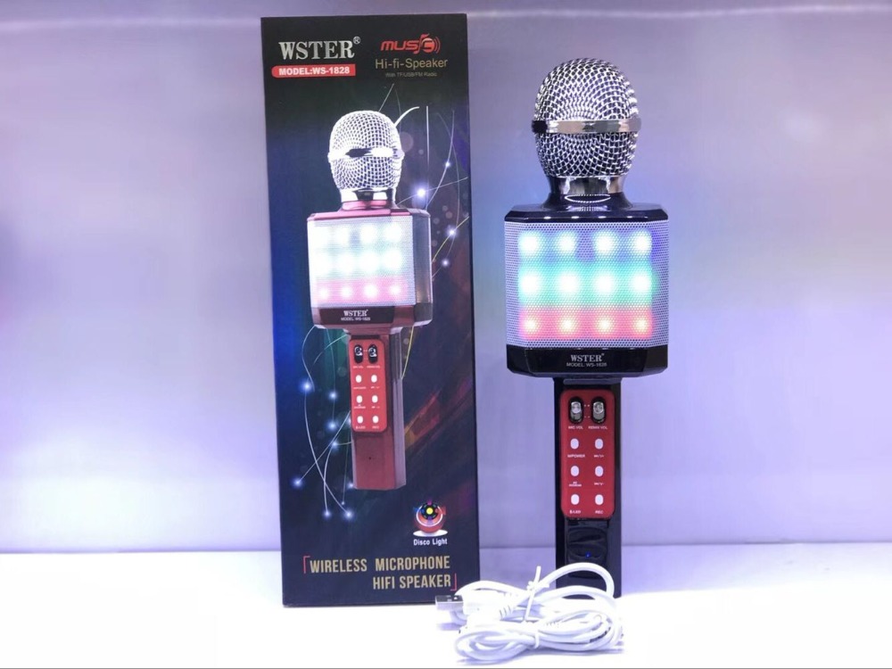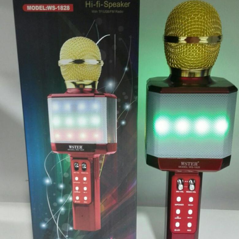 Беспроводной караоке микрофон YS-86;87 — это оригинальное устройство объединившее в себе вокальный Bluetooth микрофон и универсальную стерео колонку. Мобильный караоке-микрофон может стать отличным инструментом для начинающих вокалистов или средством скрасить приятный вечер в компании друзей. Отличительной особенностью данной модели является красочная светодиодная подсветка динамиков (при желании отключается), которая дополнит атмосферу праздника и привлечет внимание к поющему. Портативный комбо микрофон можно использовать как MP3-плеер, аудио колонку или караоке в комбинации со смартфоном или планшетом, и даже как мобильное зарядное устройство в экстренных ситуациях. Модель WS-1816 оснащена беспроводным модулем Bluetooth, FM радиоприемником, слотом USB, TF и microUSB для чтения/трансляции музыкальных файлов. Все элементы подключения размещены в нижней части рукоятки микрофона, а элементы управления удобно расположились на ручке, прямо под большим пальцем. Ручная караоке система имеет встроенный аккумулятор и динамики, а значит, микрофон не «привязан» ни к розетке, ни к дополнительной акустике.