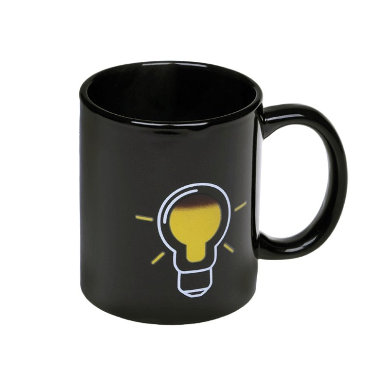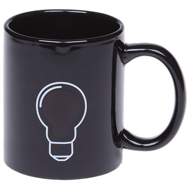 Включи свое утро! Благодаря специальной термочувствительной краске на основе жидких кристаллов на кружку нанесено двойное, меняющееся при использовании изображение. Спустя несколько секунд после наливания горячей жидкости,лампочка, изображенная на кружке «зажжется».