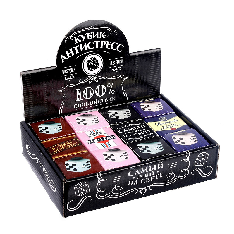 Размер кубика 3,5см Индивидуальная упаковка — картонная коробочка в одном из представленных дизайнов. Товар поставляется в ассортименте расцветок.