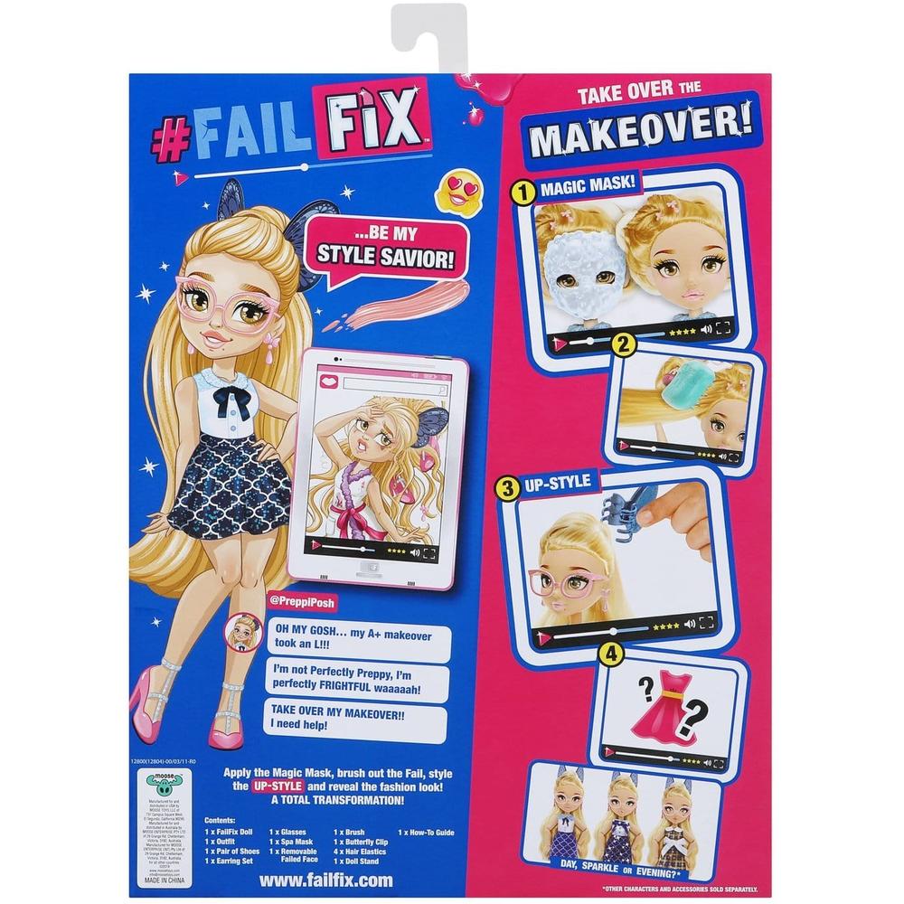 Характеристики и описание Превратись в легенду модных трендов вместе с куклами FailFix 2-в-1! Куклы ФейлФикс решили опробовать на себе популярные онлайн-уроки макияжа и причесок, но все пошло не по плану... теперь им нужна твоя бьюти-помощь, чтобы исправить все фейлы! Начни с платья — может, тебе достался ультра-редкий наряд? Затем побалуй куклу спа-процедурой с супер-маской. Сними маску и увидишь, как преобразились лицо и макияж. Найди под маской ультра-редкий макияж! Извлеки аксессуары из волос куклы, расчеши их и сделай прическу — голливудские локоны. Заверши образ с помощью обуви и украшений. Она может позировать — куклу можно установить на прилагаемую подставку. В упаковке представлена кукла ДО преображения. В игровом наборе: кукла (22 см), наряд, пара обуви, серьги, украшение на шею, 2 маски, расческа, 2 заколки-бигуди, 4 резинки для волос, подставка, инструкция. У куклы подвижные суставы — 10 точек артикуляции. Комплектация В игровом наборе: кукла (22 см), наряд, пара обуви, серьги, украшение на шею, 2 маски, расческа, 2 заколки-бигуди, 4 резинки для волос, подставка, инструкция. Материал: пластик. Товар сертифицирован. Упаковка: коробка с окном (23,5 х 7 х 33 см).