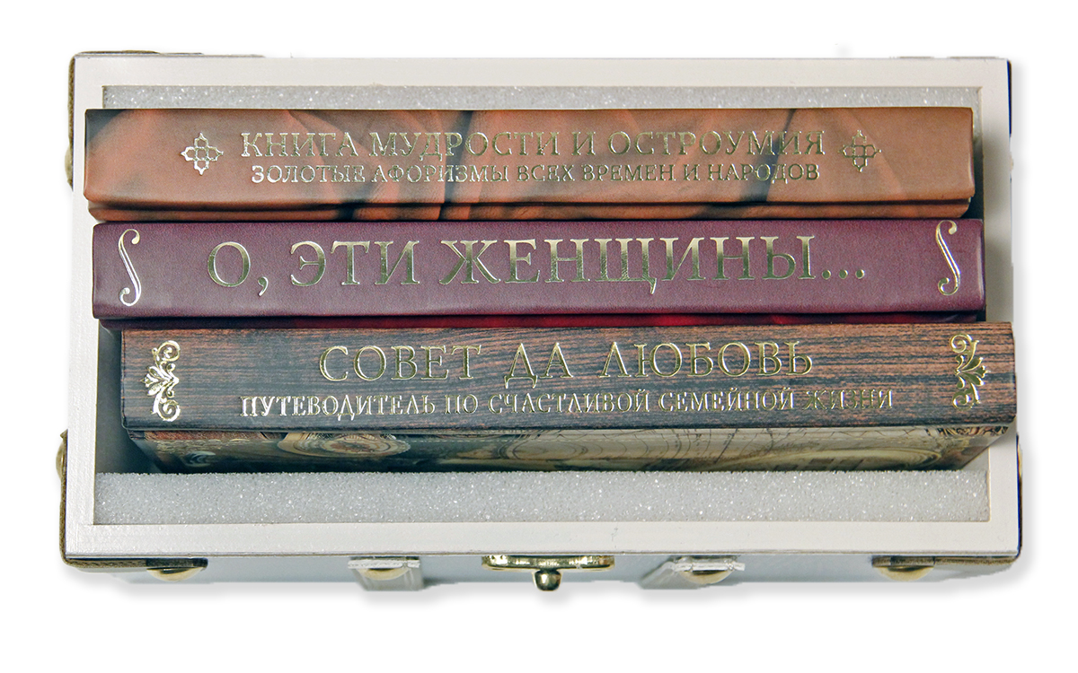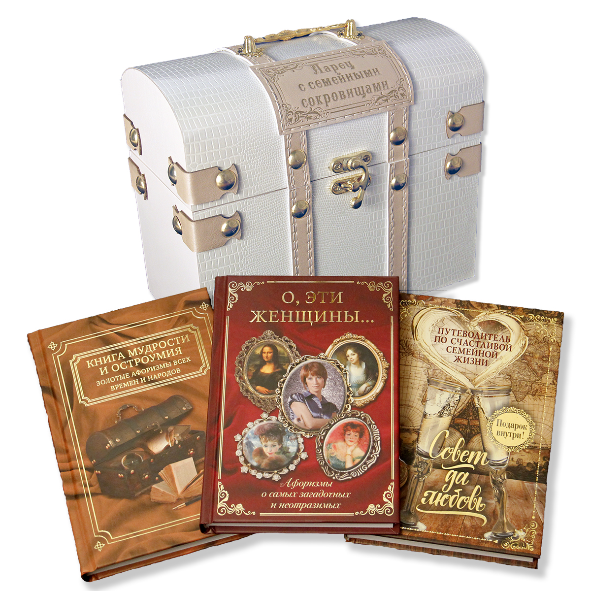 «Ларец с семейными сокровищами» — оригинальный подарок на день и годовщину свадьбы, семейным парам — независимо от стажа совместной жизни, неженатым друзьям и незамужним подругам. Мысли, изложенные в лёгкой и доступной форме в трёх книгах афоризмов, без преувеличения можно назвать истинными семейными сокровищами.