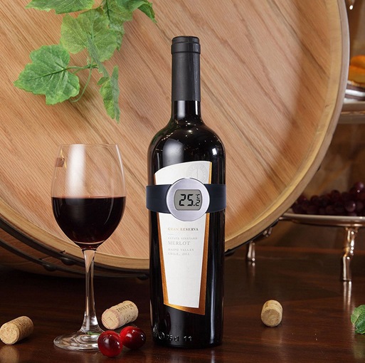 Для измерения температуры вина в бутылке просто наденьте браслет с термометром на бутылку. Уже через пару минут результаты измерений, выполненных с минимальной погрешностью (не более 1°C), будут выведены на ЖК экран.