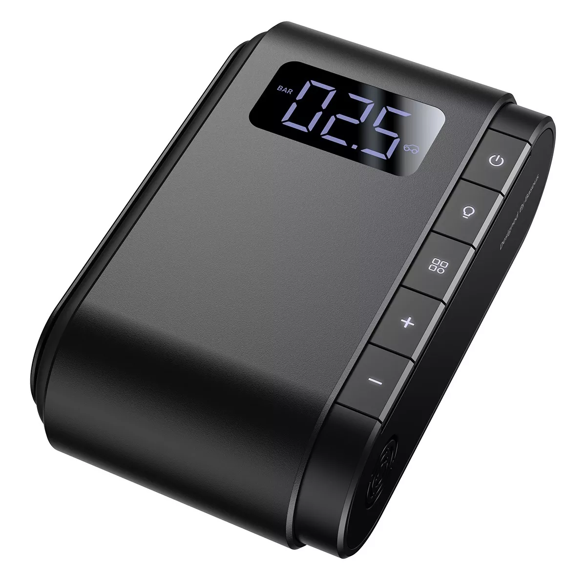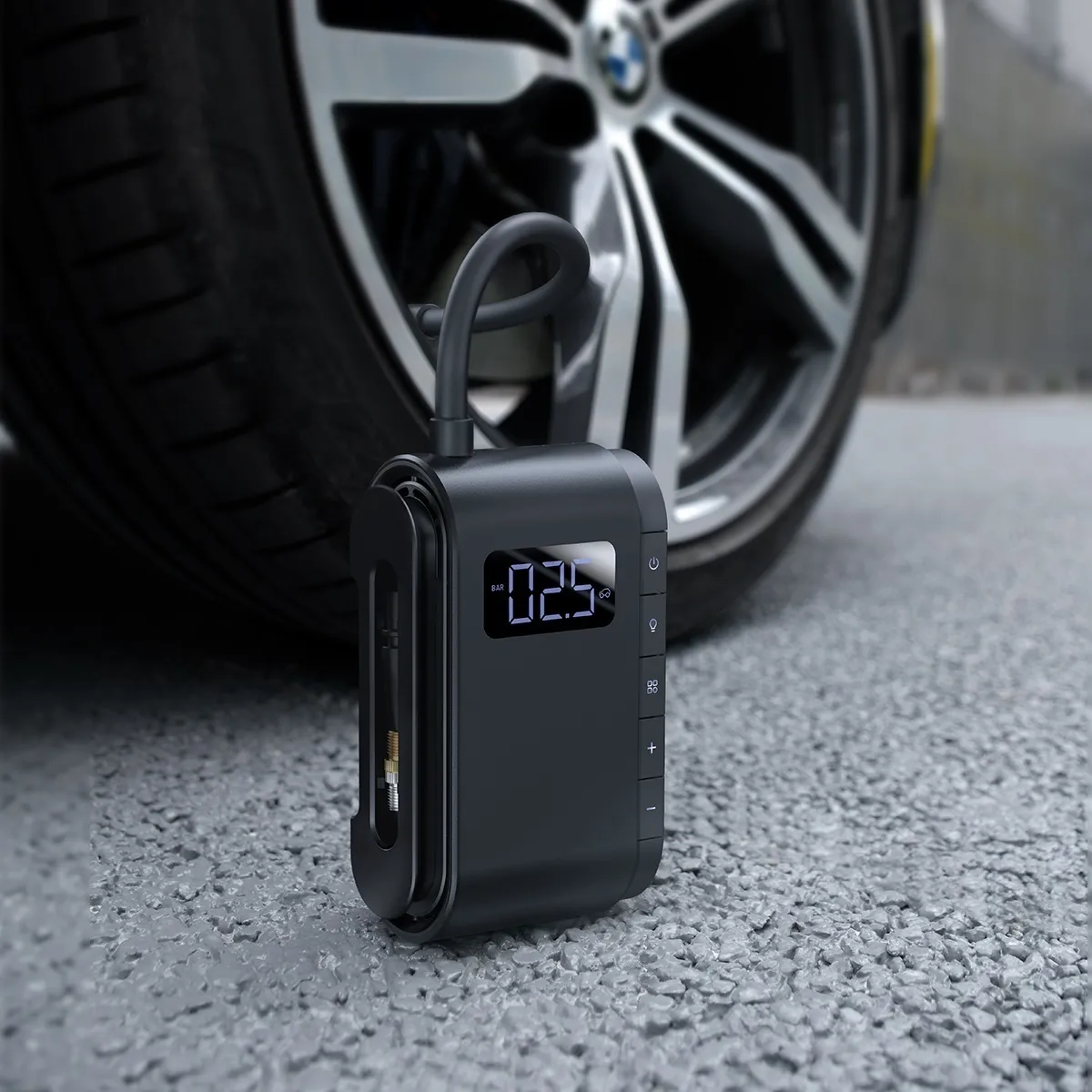 Описание Электрический насос для автомобиля Baseus Dynamic Eye Inflator Pump является простым и функциональным устройством, которое необходимо иметь каждому автомобилисту в багажнике. С помощью компрессора Baseus можно не только быстро накачать колесо легкового автомобиля или внедорожника, но и быстро отремонтировать проколотую шину. Для этого необходимо использовать восстанавливающую жидкость для ремонта шин Baseus Tire Repair Fluid. Насос оснащен встроенным, литиевым аккумулятором что дает возможность накачать колесо без автомобильной зарядки. Его также можно использовать ночью, потому что имеется фонарик который прекрасно освещают рабочую зону. Цельнометаллический корпус такого же размера, как мобильный телефон, и размещается в автомобиле, не занимая много места. На корпусе компрессора находится дисплей и кнопки управления которые контролируют процесс подкачки колеса. На дисплеи отражается точное давления в шинах, а с помощью кнопок можно добавить давления или уменьшить. В комплекте идут насадки для подкачки мяча, велосипеда и мотоцикла.