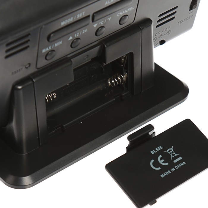 Технические характеристики Страна: Китай Питание: батарейки ААА Кол-во батареек: 3 С будильником: Да Радиодатчик: Да С метеостанцией: Да В помещении t, °С: -5…+50 За окном t, °С: -40…+50 Габариты (ВxШxГ), мм: 158x87x48 Вес, кг: 0,36 Гарантия: 1 год
