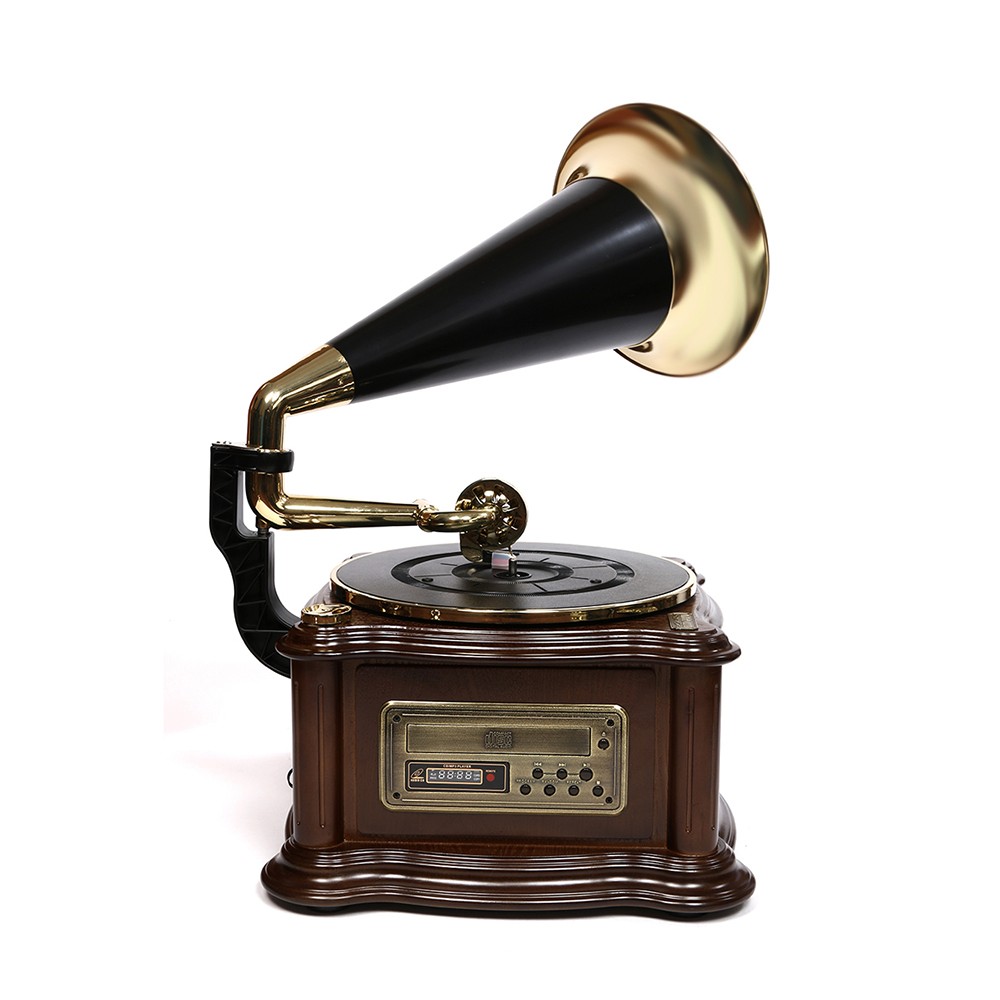 Как здорово, что мода на ретро возвращается! Современные вещи, конечно, смотрятся тоже очень красиво, но ничто не заменит нам милых, немного нелепых и громоздких вещиц, которыми так дорожили наши бабушки и дедушки — старые телефоны, проигрыватели и граммофоны! В них, старинных граммофонах и проигрывателях, действительно есть своя особенная прелесть! Со временем к ним привыкаешь и начинаешь воспринимать, как живое, умное существо. И у вас, дорогой покупатель, есть уникальная возможность купить вип подарок на свадьбу, день рождения, юбилей — прекрасный музыкальный центр-ретро «Граммофон»