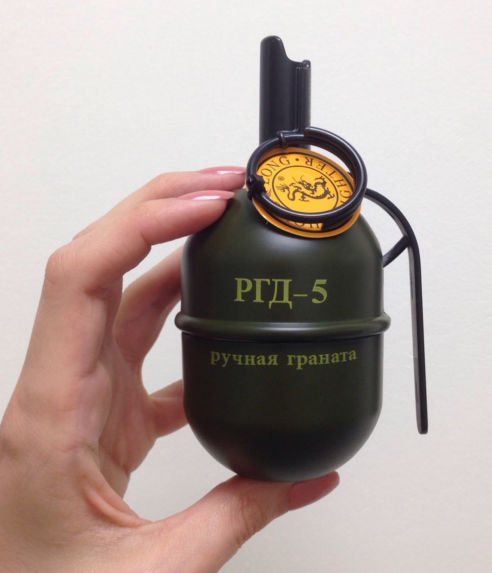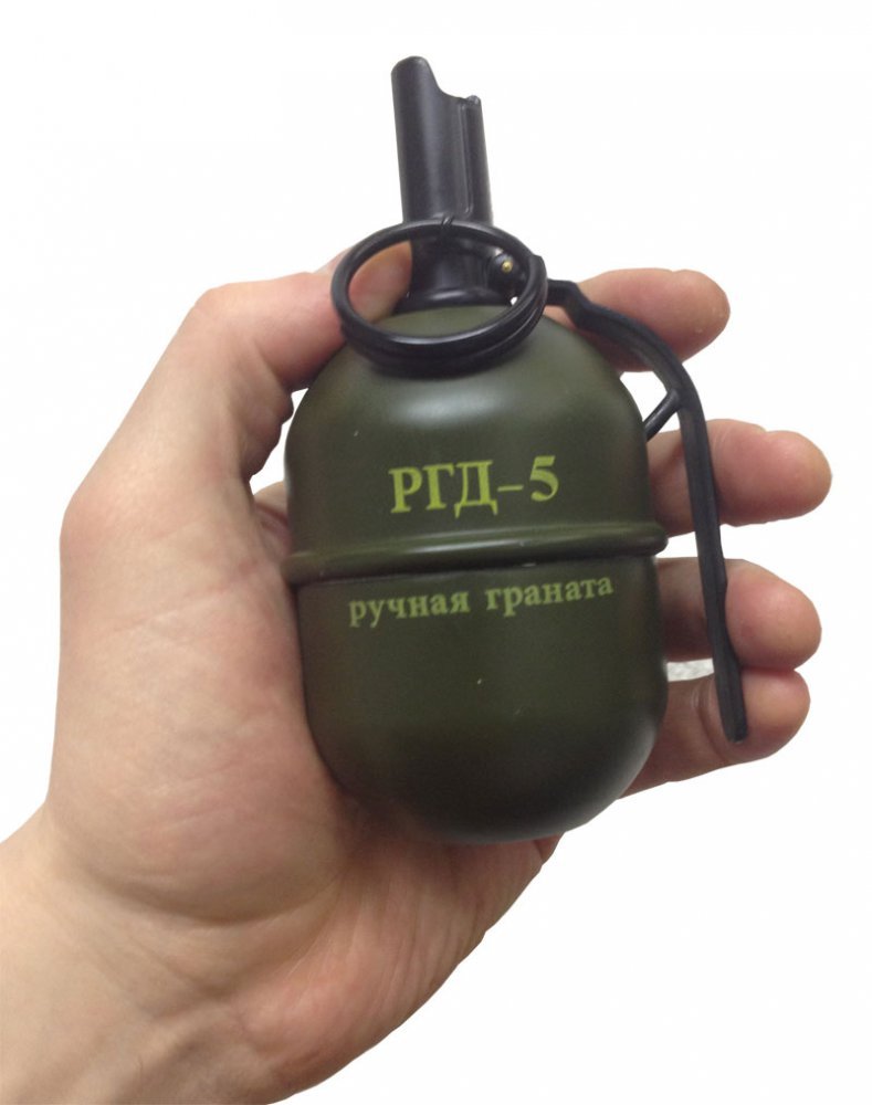 Необычный аксессуар «Граната РГД-5» — по сути, это газовая зажигалка + компактная пепельница. А по виду этот креативный предмет выглядит, как настоящая граната РГД-5, и подобная реалистичность боевого оружия в вашей руке может смутить и испугать кого угодно. Зажигалка в виде гранаты одновременно служит пепельницей — её нижняя часть отделяется от верхней поднятием верхней части. Если вы в сомнениях, что подарить другу, обратите внимание на эту зажигалку — такая оригинальная и практичная вещь точно понравится курильщику, а для ценителя оружия станет отличным сувениром!
