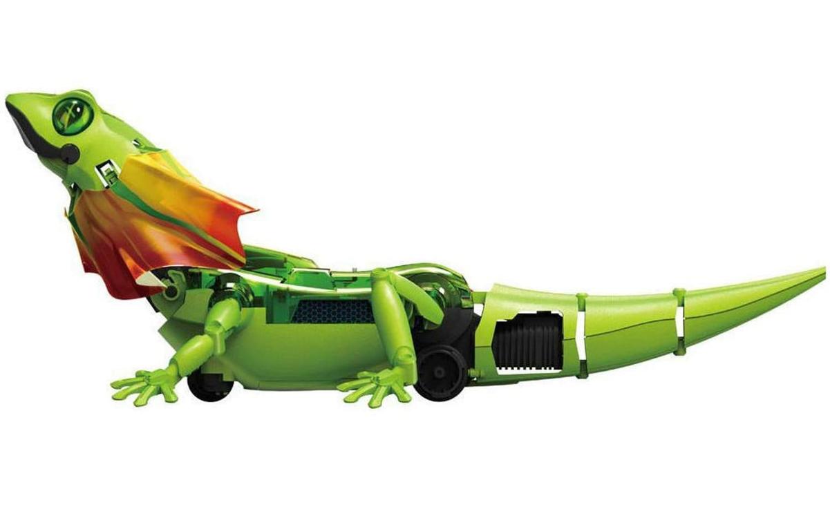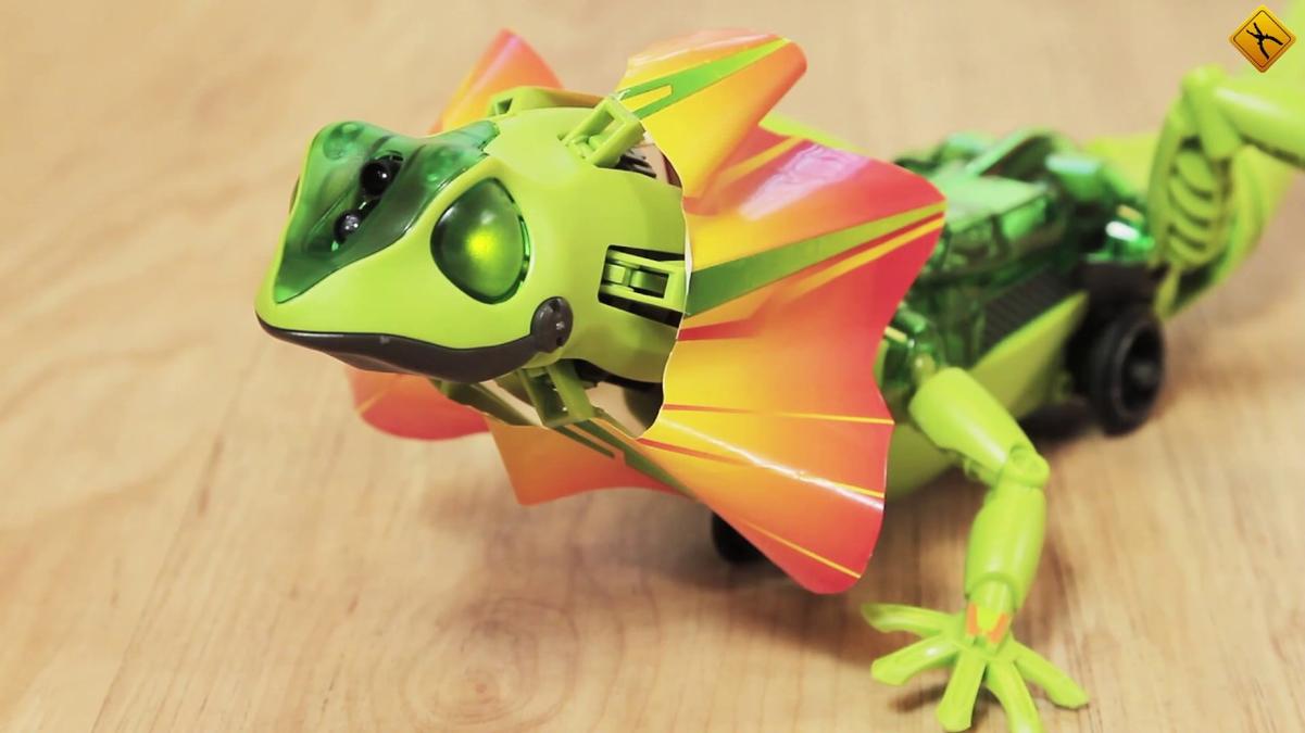 Если вы выберете режим «Побег», ящерица тут же испугается. У неё загорятся глаза, а ещё она расправит воротник на шее, раскрыв при этом рот. Так игрушка будет бегать до тех пор, пока не удалится на безопасное расстояние. Переведите рычаг на спине рептилии в другое положение, и включится режим «Погладь меня». Электронное животное расправит воротник и будет ждать, пока вы её погладите.