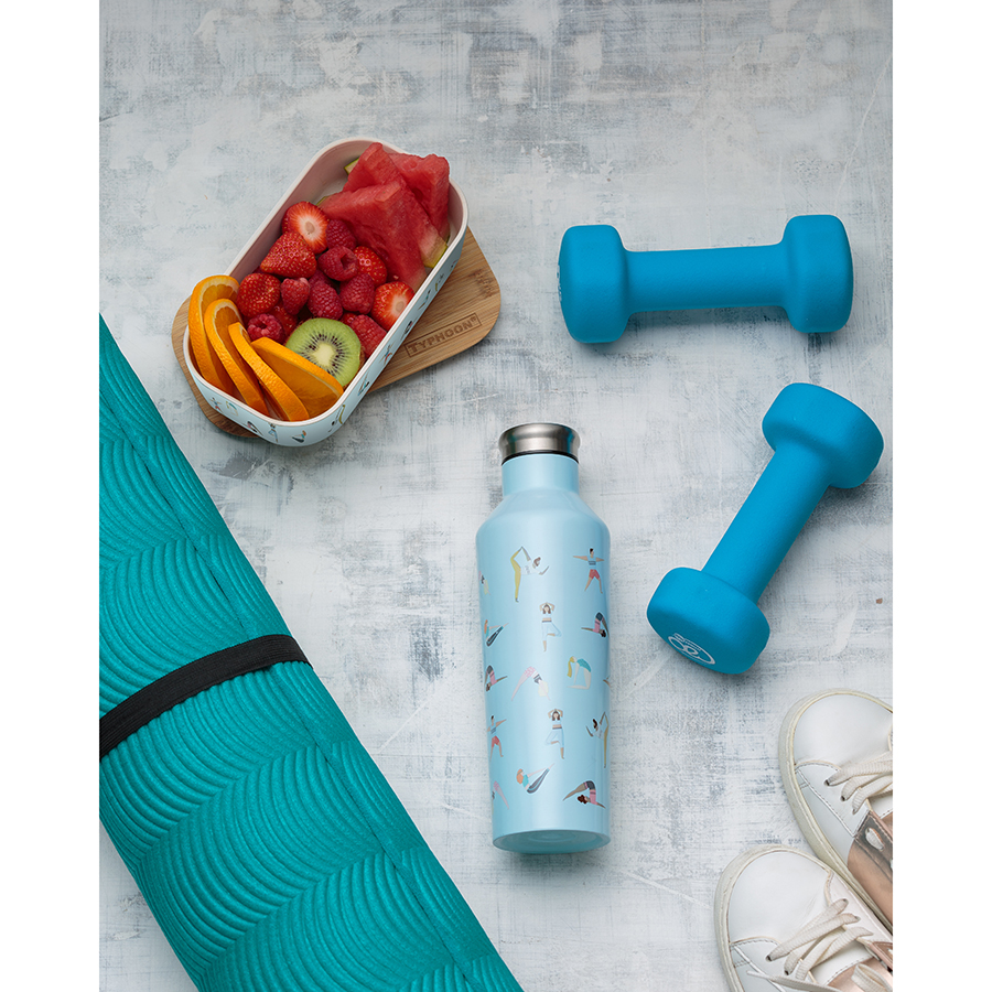 Двойной корпус бутылки держит температуру горячих напитков до 12 часов и холодных — до 24.