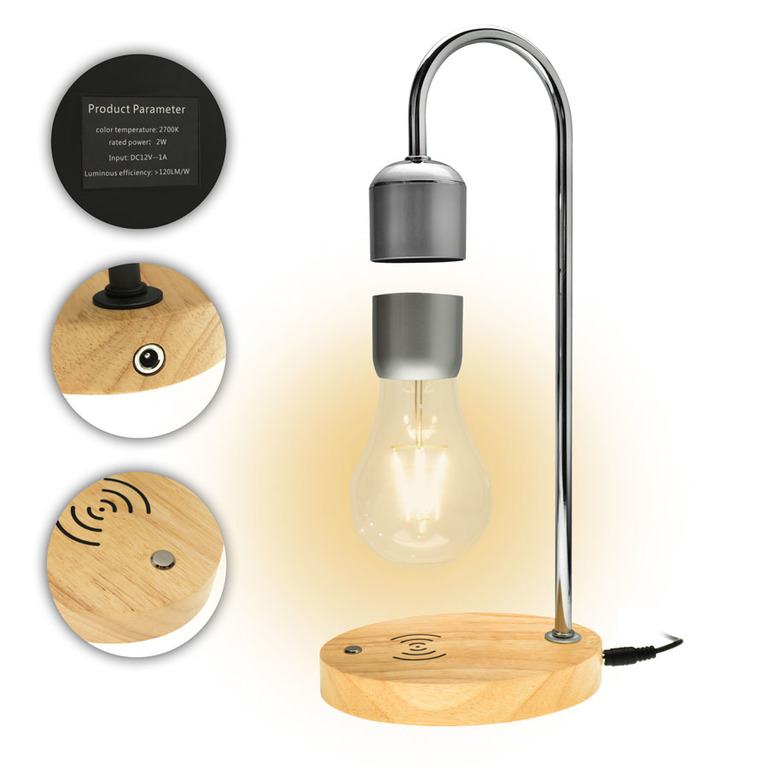 Левитирующая, светодиодная лампа с беспроводной зарядкой